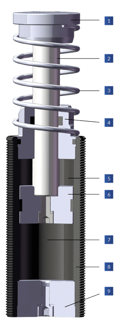 - wahlweise konstante Reaktionskraft über den gesamten Hub oder ansteigende Reaktionskraft im vorderen Hubbereich